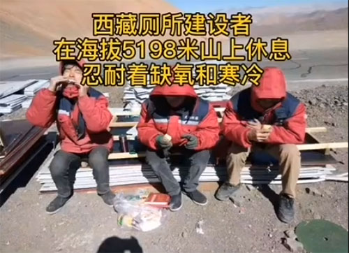我們可以看到我們的廁所建造者受著高海拔缺氧、寒冷、大風(fēng)的惡劣環(huán)境下依然在堅(jiān)持著廁所的建設(shè)施工,廁所的外形已經(jīng)成型。那么是什么支撐著雨施捷人在如此高海拔,寒冷缺氧的情況下冒著大風(fēng)繼續(xù)建造廁所著,是我們雨施捷人心中堅(jiān)定的信念,堅(jiān)信只要我們肯努力付出就一定可以實(shí)現(xiàn)我們的目標(biāo),是希望在高海拔的山區(qū)內(nèi)的人們也可以用上我們生產(chǎn)安裝的干凈、整潔、環(huán)保的公共廁所。