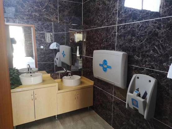 雨施捷的新型生態(tài)環(huán)保廁所內(nèi)部設計以人性化、功能化設施為主,改通槽式廁位為密閉獨立廁位,設置獨立、密閉的廁位,充分保證了游客如廁環(huán)境的衛(wèi)生、隱私,還有第三方衛(wèi)生間,專門提供給兒童、帶孩子的母親以及殘障人士使用,以及擁有適合兒童使用的坐便器、洗手臺,還有照顧孩子的嬰兒護理臺、嬰兒座椅。洗手臺和廁所走廊放置了精致的大小不同的盆栽,給廁所的空氣添加了一縷清香。洗手液、烘手機這樣的基本設備也一應齊全,鋪設的咖色大理石瓷磚,顯得格外干凈。