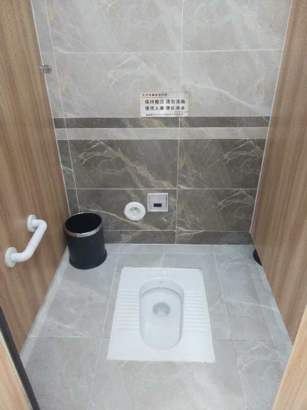 室內(nèi)配置:不銹鋼水沖蹲便器、火燒板防滑地板、化妝鏡、衣帽鉤、手紙盒、廢紙簍、照明燈、換氣扇、指示牌等。